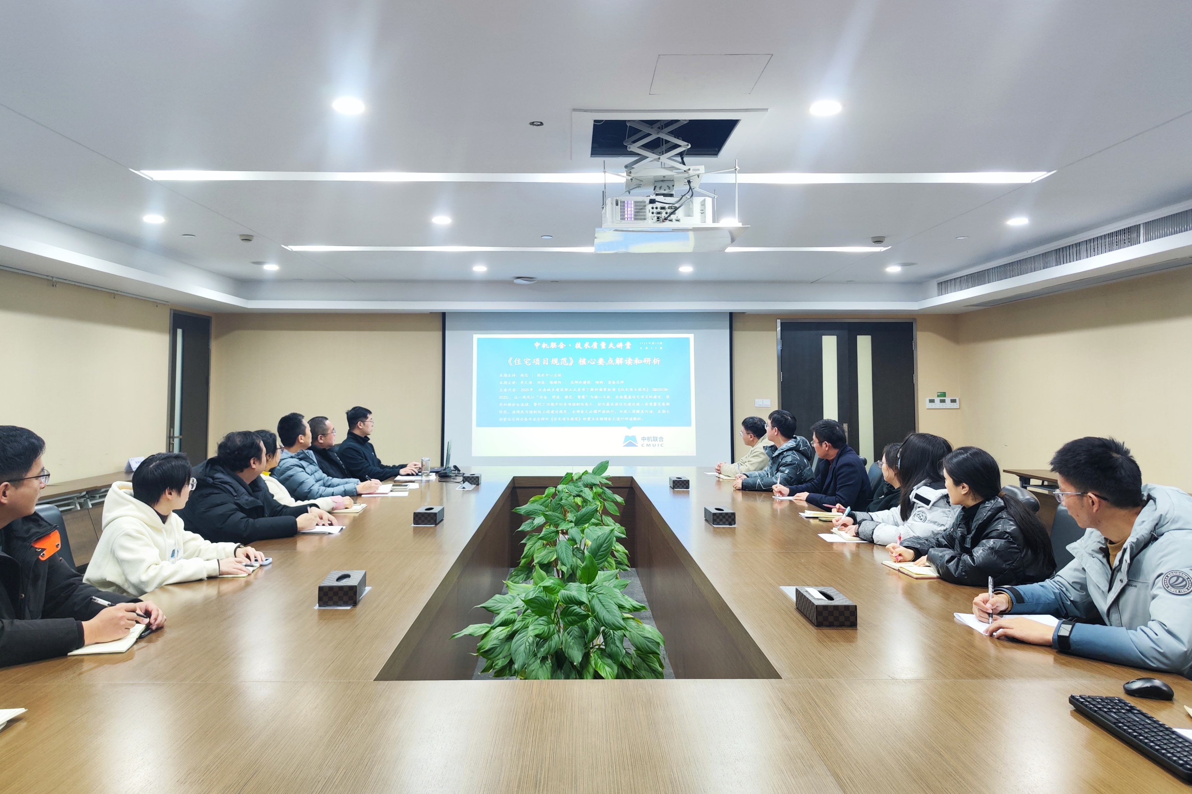 中机联合下属中机工程有限公司总师办相关负责人分别从建筑、结构、电气三块内容讲解,针对新增及修订内容,如层高与空间标准、隔声与噪声控制、适老化与无障碍设计、智能化系统配置等热点议题,以条文对比方式进行了细致研判与解析,明确了新旧规范的技术衔接要点与执行中的关键风险控制环节。交流答疑环节,参会同事踊跃提问,就楼板隔声性能设计、抗震设防类别划分、配电箱优化等问题展开热烈讨论,现场技术交流氛围浓厚。
